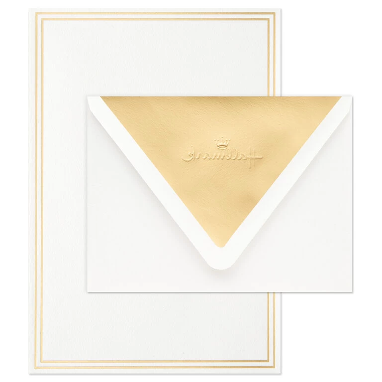 - Boxed stationery set includes 20 sheets/foil-lined envelopes.