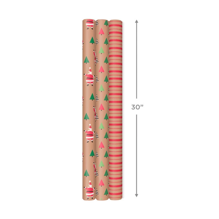 Hallmark Merry Kraft Prints 3-Pack Christmas Wrapping Paper, 90 Sq. Ft.