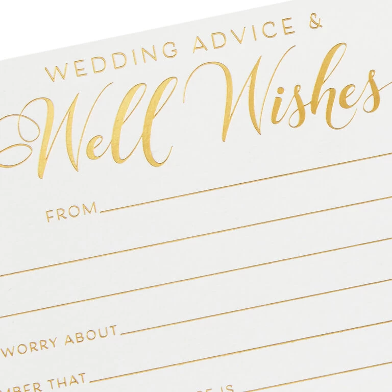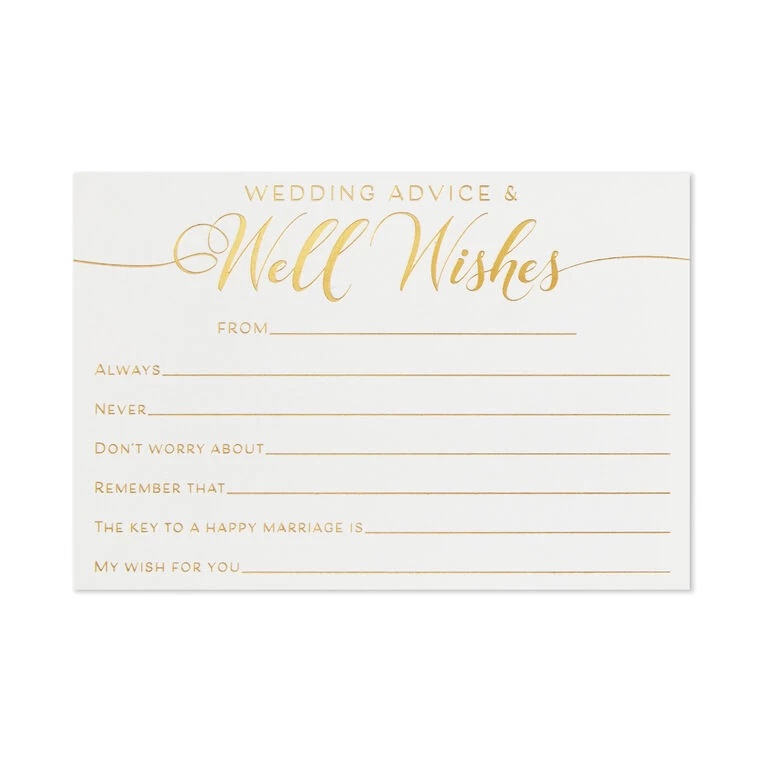 From/Always/Never/Don’t worry about/Remember that/The key to a happy marriage is/My wish for you. - Each note card: 6″ W x 4.25″ H