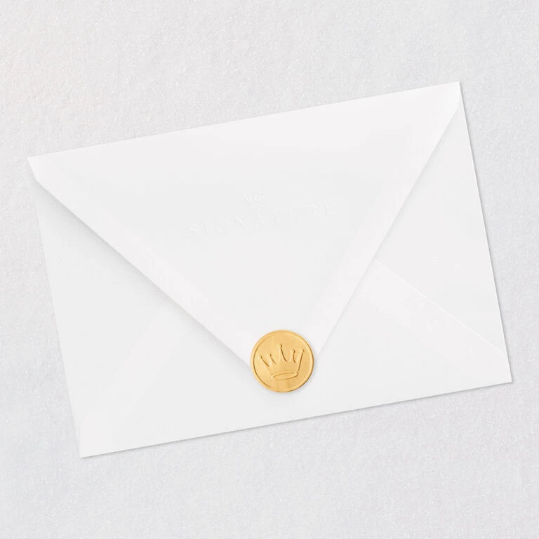 - Includes one card and one lined envelope with a Gold Crown seal. Envelope color may vary.